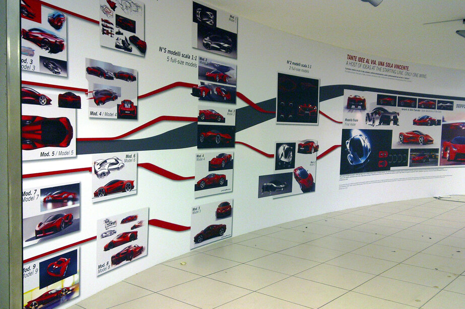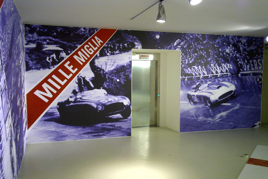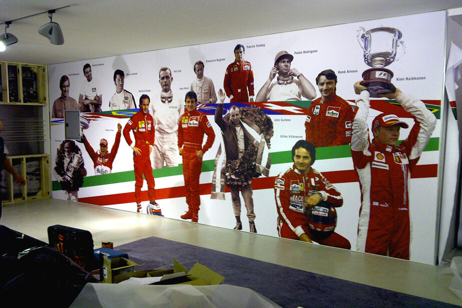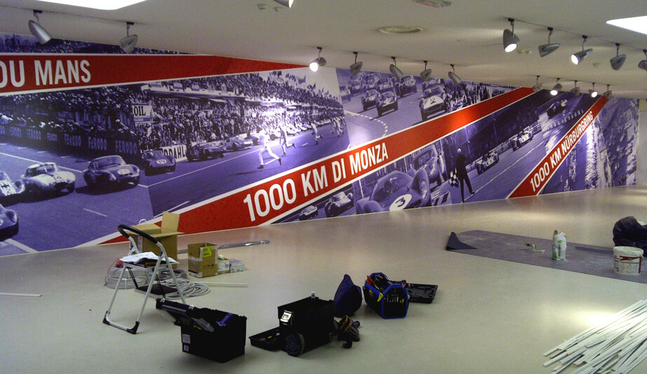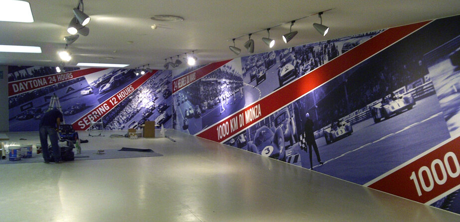 La necessità del cliente era la personalizzazione della parete con grafiche accattivanti; si richiedeva velocità di esecuzione, senza odori o sporco eccessivo, in alternativa a pannellature incollate col silicone. Grazie al sistema Descor il risultato ottenuto è stato la copertura di pareti piane in pezzo unico senza giunte da 3x35 metri e anche curve da 3x18 metri.