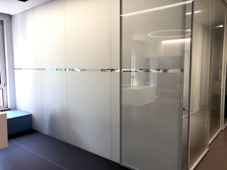 La richiesta era di ottenere degli spazi riservati ma al contempo vedere il passaggio di persone. Con l’applicazione delle pellicole decorative per vetro 3M Fasara è stato possibile ottenere questo risultato con fogli in pezzo unico da 1,5x3 metri.