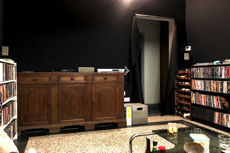 Soddisfare l’esigenza di avere una saletta cinema privata con l’utilizzo di pannelli isolanti e tessuto fonoassorbente tensionato col sistema Descor. La scelta del colore nero è stata dettata dalla necessità di aumentare il contrasto video del proiettore.