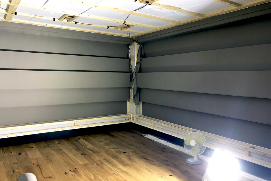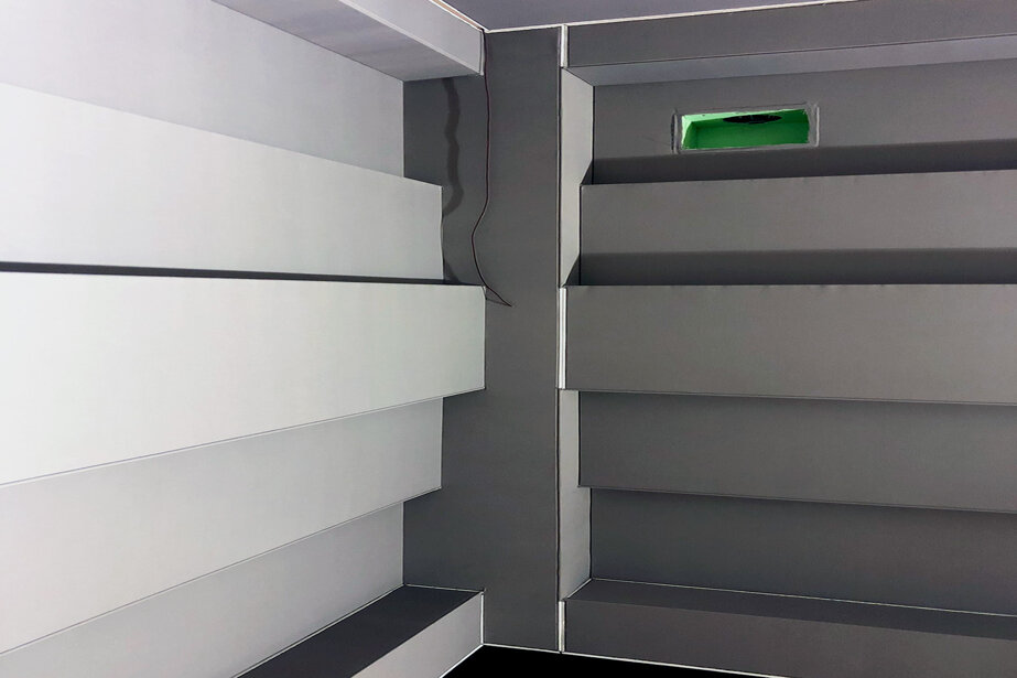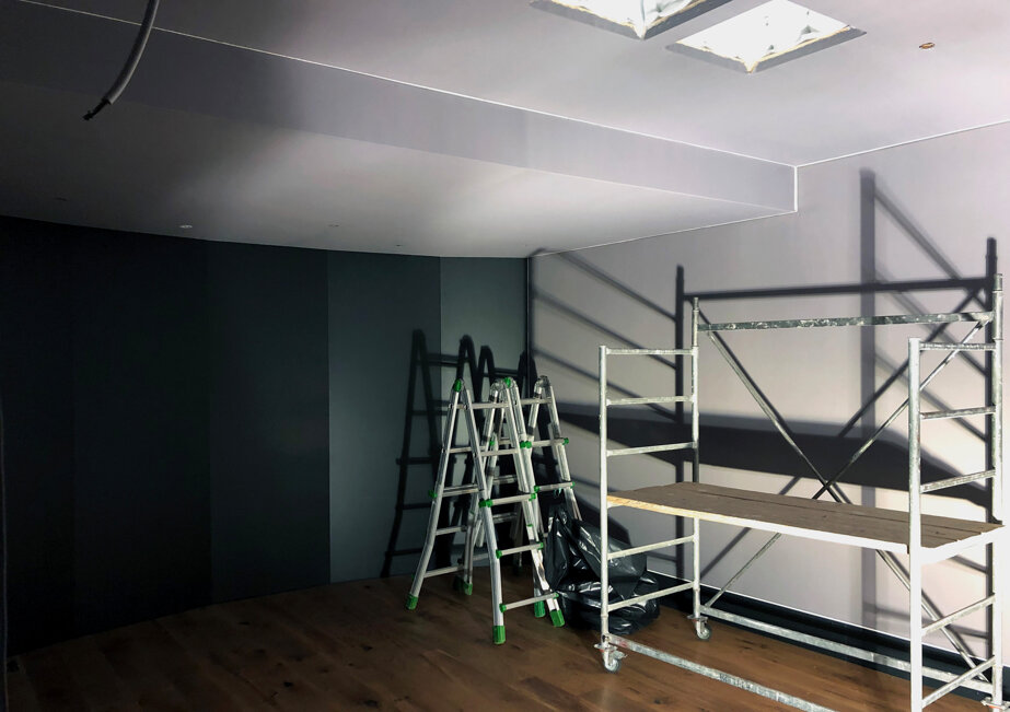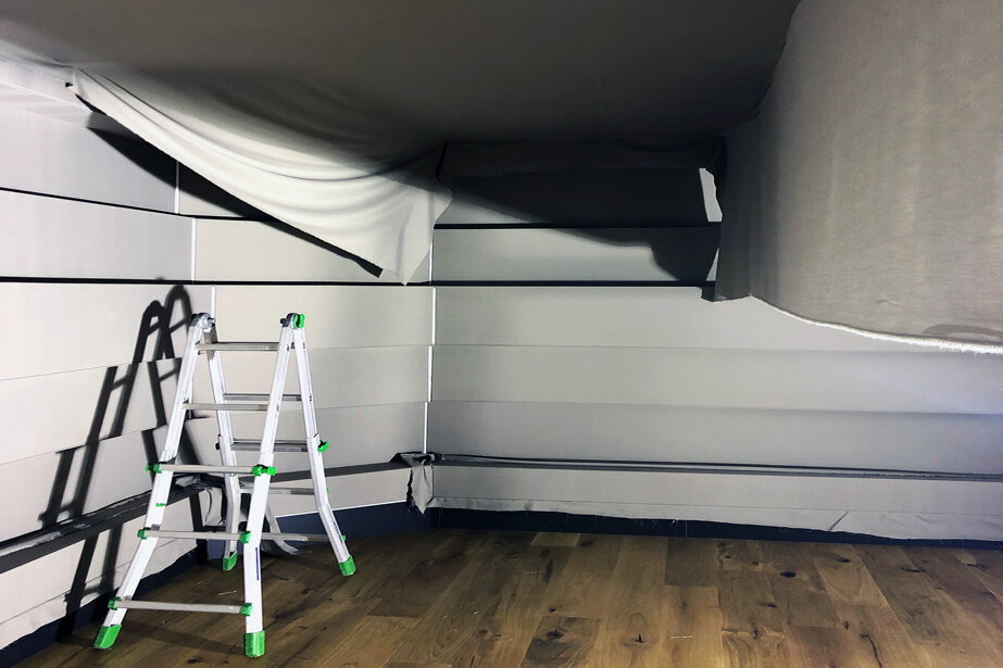Il progetto ha visto la realizzazione di controsoffitti e contropareti in tessuto fonotrasparente di una sala prove e di una sala d’ascolto: la scelta del sistema Descor ha dato modo di ottenere una finitura pulita e piacevole senza inficiare e compromettere la resa fonoassorbente studiata dagli ingegneri del suono.